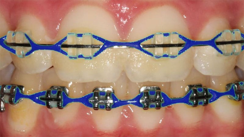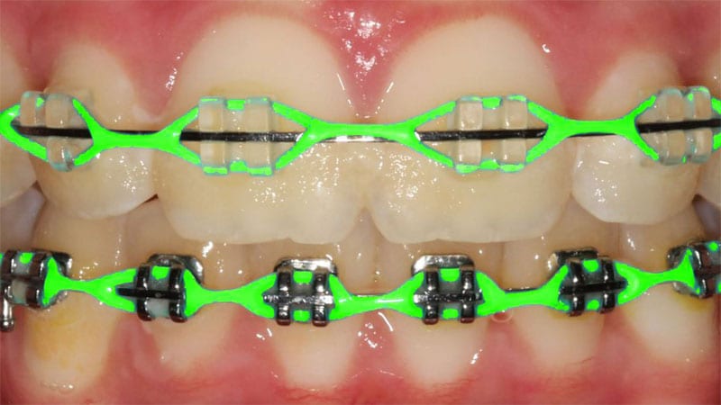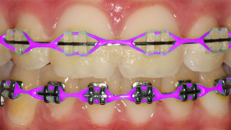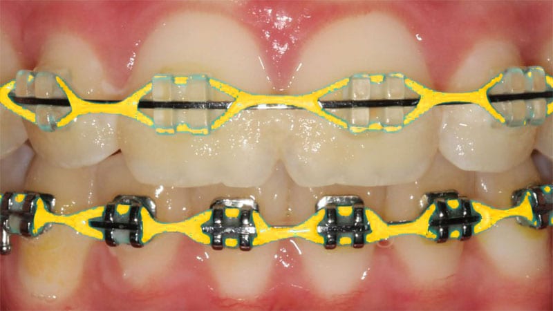 The elastic ligatures of braces, especially light-coloured ones, can be susceptible to staining through factors such as pigments in the foods and drinks we consume and bacteria accumulation.